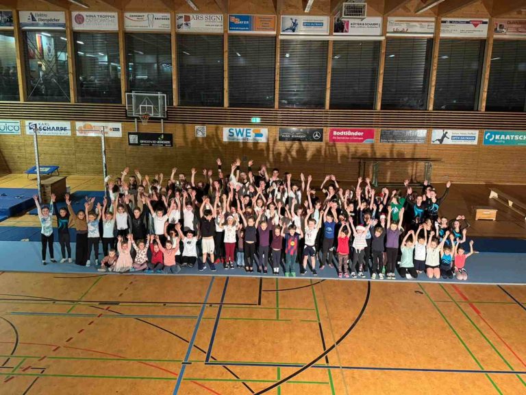 Am 06.12.2025 fand wieder die diesjährige TVL Nikolausfeier in der Sporthalle Römerstraße statt. Rund 170 Kinder versammelten sich mit ihren Eltern, Geschwister und Großeltern und füllten die Sporthalle wie bei einem Heimspieltag. Um 15:30 Uhr konnte es dann mit den Aufführungen der verschiedenen Gruppen losgehen. Beginnen durften die jüngsten Kinder im Verein. Sowohl die 2-4 jährigen aus dem Eltern-Kind-Turnen, als auch die 4-6 jährigen Sportzwerge zeigten vor mitklatschender Kulisse sportliche Tänze. Weiter ging es mit den Leichtathleten, die dem Publikum von der U8 bis hin zur U16 gemeinsam die Disziplin “Hürdenlauf” näherbrachten. Anschließend wurden rund 30 Sportabzeichen an die Leichtathleten verteilt, bevor dann die Turner mit ihren Aufführungen starteten. Von den 6jährigen bis hin zu den Ü18jährigen zeigten die Turner eindrucksvolle Küren an den verschiedenen Turngeräten und begeisterten die gesamte Sporthalle. Natürlich durfte dann auch nicht der Dank an die Trainer fehlen, die all das mit ihrem ehrenamtlichen Engagement erst möglich machen! Zum Abschluss durften nochmal alle Kinder nach vorne kommen, um gemeinsam zu tanzen. Eine beeindruckende Aufführung mit so vielen Kindern! Nach einem gemeinsamen Foto aller Kinder, ging es dann los zum Fackellauf. Zurück an der Halle wartete bereits der Nikolaus mit tollen TVL-Geschenken auf die Kinder. Zum Abschluss einer gelungenen TVL-Nikolausfeier gab es für alle Kinder noch Punsch und Würstle, gespendet vom Dulkhäusle-Pächterehepaar Rügner. An dieser Stelle vielen Dank an die Familie Rügner, sowie an alle anderen Helfer, die zum Gelingen dieser Veranstaltung beigetragen haben.